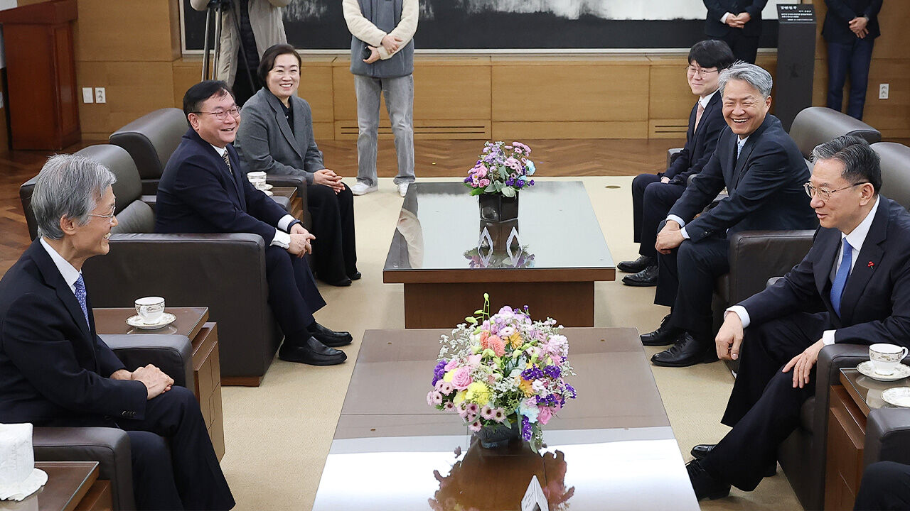 ▲ 이재명 정부가 임명하는 첫 대법관 후보군을 선별하는 후보추천위원회가 열린 21일 서울 서초구 대법원에서 조희대 대법원장(왼쪽)과 정성호 법무부 장관이 대화를 나누고 있다.