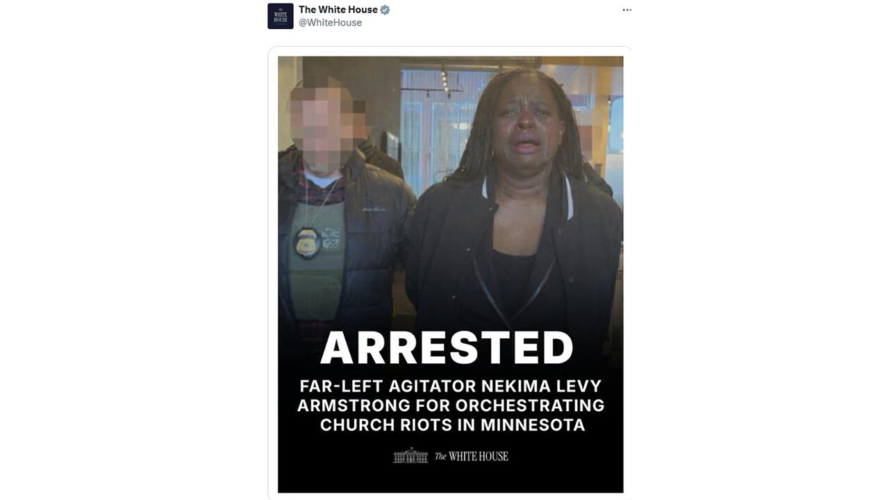 캐롤라인 레빗 백악관 대변인은 놈 장관의 게시물을 공유했고, 곧 백악관도 암스트롱 체포 사진을 X에 올렸습니다.