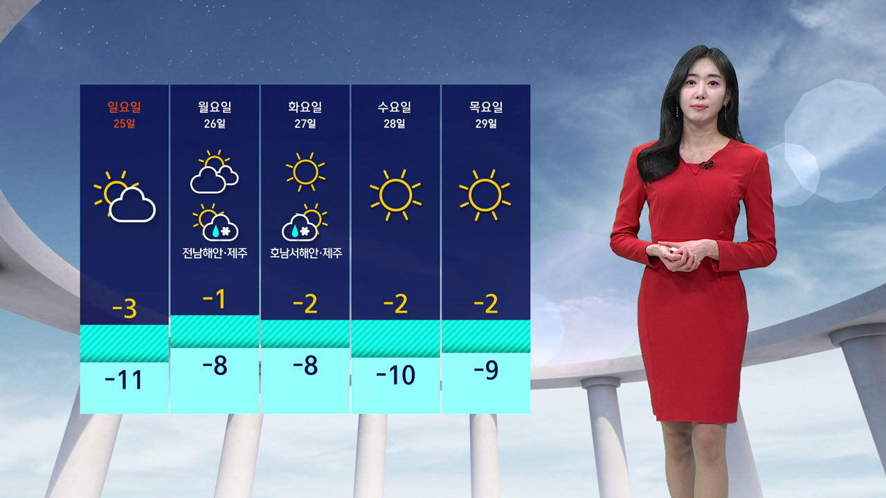 한파특보가 발효 중인 중부를 중심으로 오늘도 영하의 강추위가 종일 이어지겠습니다.