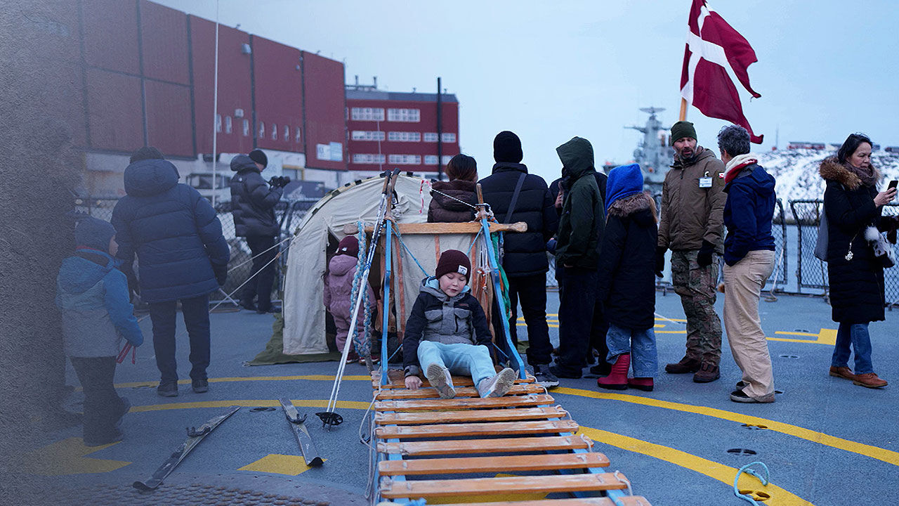 그린란드 수도 누크 항에 정박 중인 덴마크 군함도 시민들로 가득 찼습니다.
