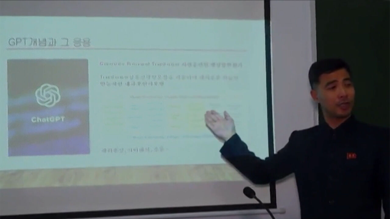 외부 인터넷 사용이 엄격하게 통제되는 북한에서 이 분야 연구자들이 모여 챗GPT의 개념과 응용 방법에 대해 공부를 하는 장면으로 보입니다.