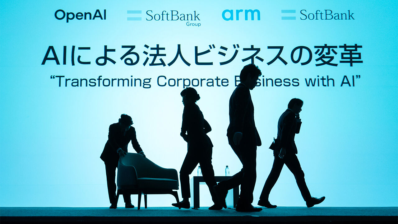 ▲ 일본 도쿄에서 지난해 2월 3일 손정의 소프트뱅크 그룹 회장(왼쪽)과 샘 올트먼 오픈AI 최고경영자의 대담을 준비하고 있는 모습