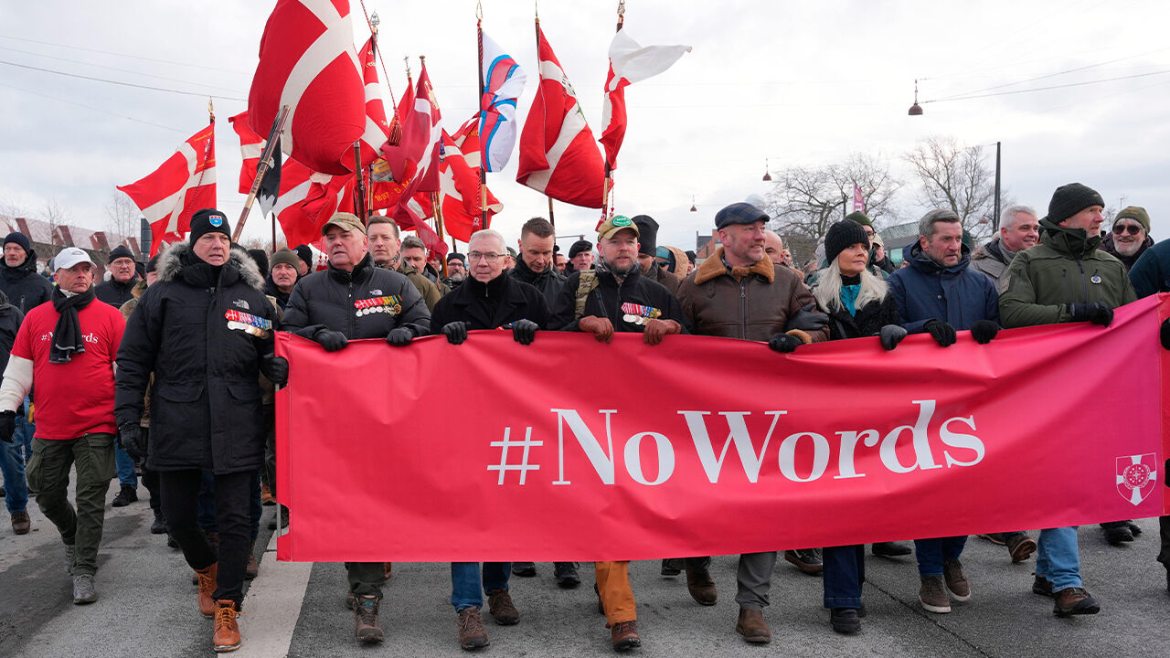 ▲ 31일(현지시간) 덴마크 코펜하겐에서 트럼프의 동맹국 파병 폄하와 그린란드 병합 야욕에 항의하는 행진을 펼치는 덴마크 파병용사들