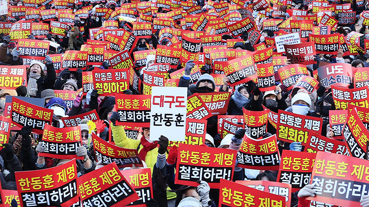 장동혁 대표를 비롯한 국민의힘 지도부가 한동훈 전 대표 제명을 확정하자 한 전 대표 지지자들이 규탄 집회를 연 것입니다.