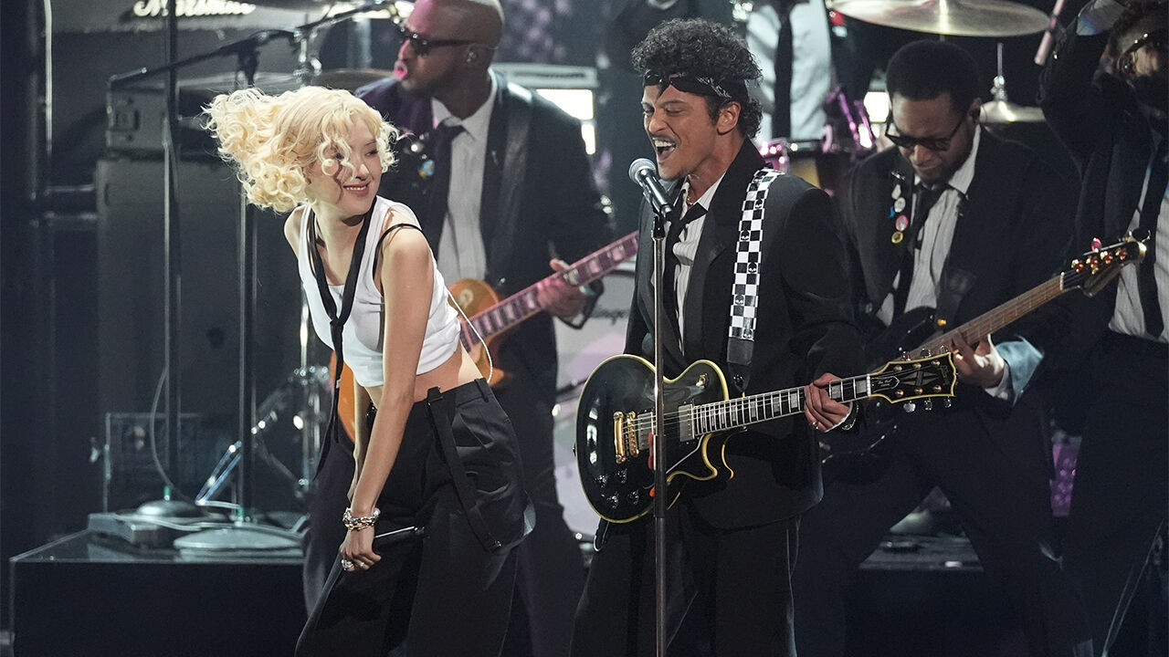 ▲ 그래미 오프닝 공연하는 로제(왼쪽부터)와 브루노 마스