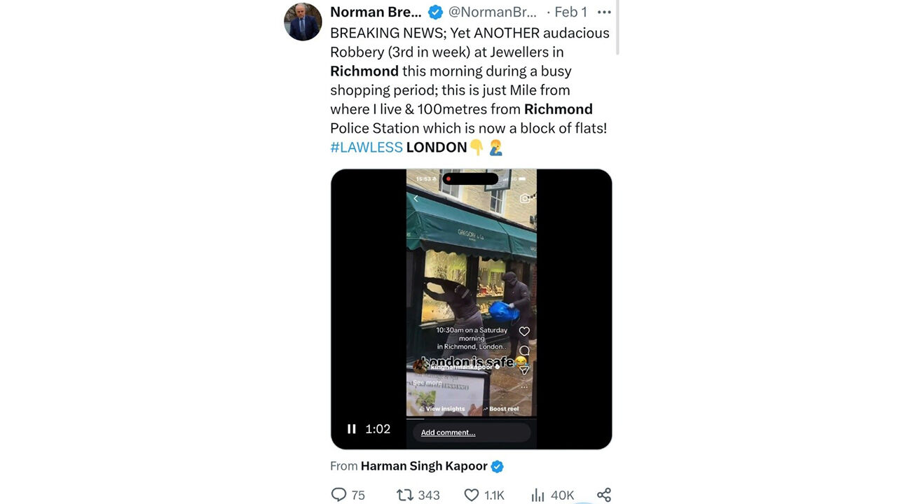 1일(현지시간) 영국 BBC와 텔레그래프에 따르면 전날 오전 10시 30분 런던 남서부 리치먼드 지역의 한 보석 가게를 도둑 두 명이 습격했습니다.