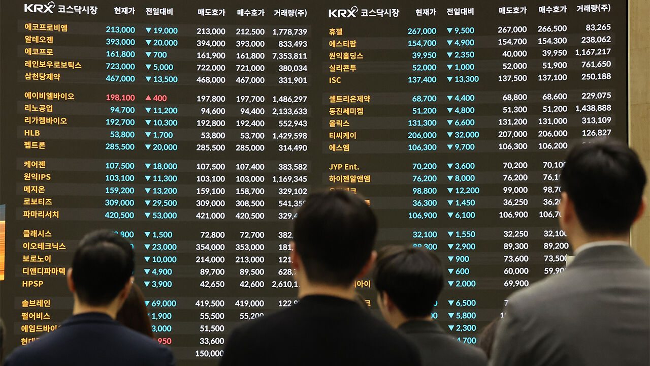 ▲ 코스피가 미국 증시 약세 여파로 인해 5,000선 아래로 떨어진 2일 서울 여의도 한국거래소 홍보관에 개별 종목 지수가 표시되고 있다.