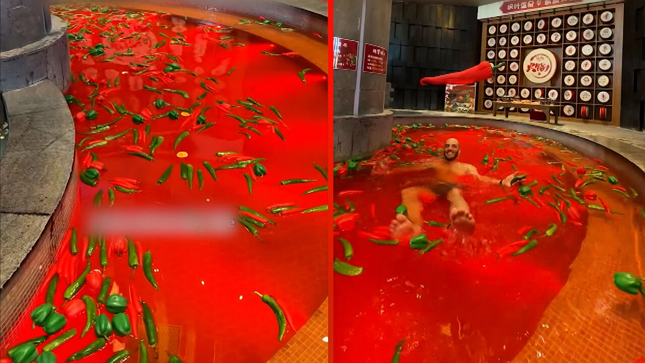 얼핏 보면 거대한 전골 요리 같은데, 한 남성이 거침없이 맨몸을 담급니다.