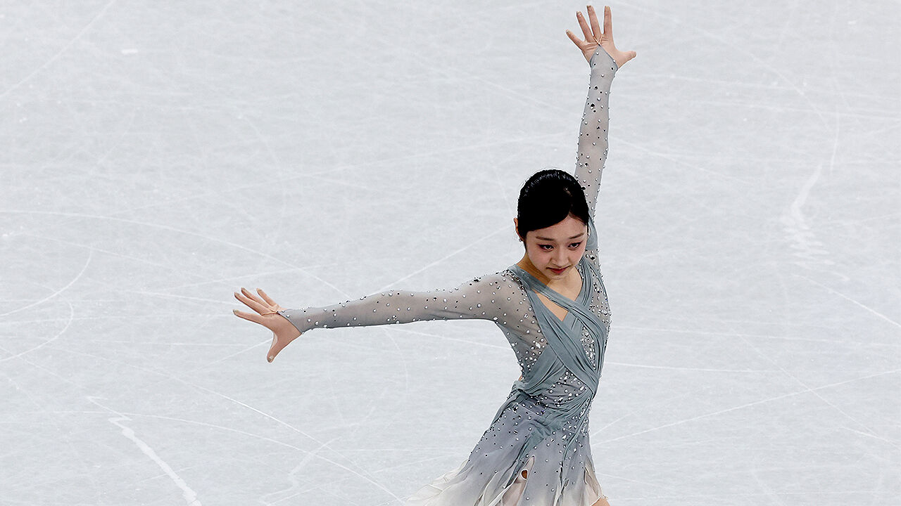▲ 2026 밀라노·코르티나담페초 동계올림픽 개막일인 6일(현지시간) 이탈리아 밀라노 아이스스케이팅 아레나에서 열린 피겨 여자 싱글 경기. 한국대표팀 신지아가 연기를 펼치고 있다.