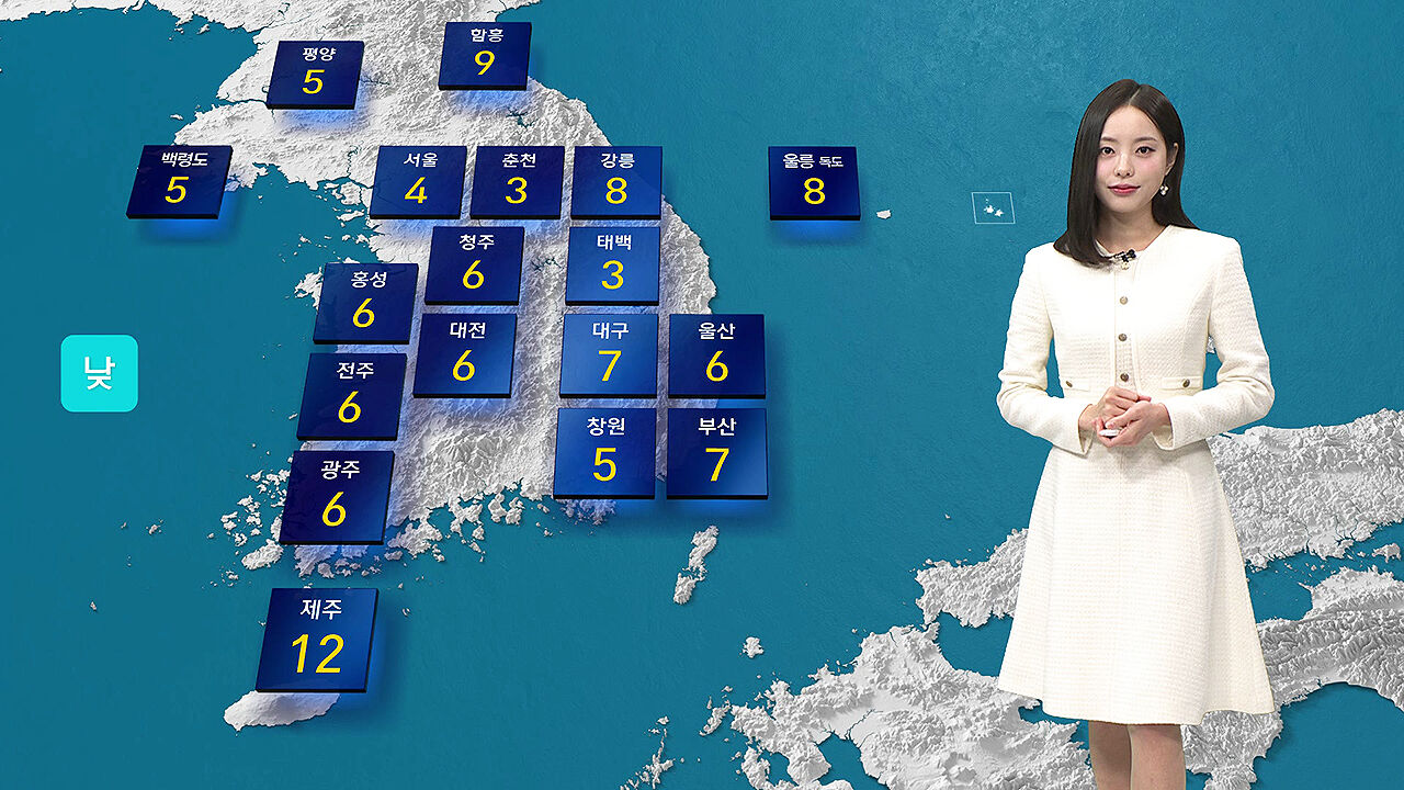낮 기온 서울 4도로 어제와 비슷하겠습니다.