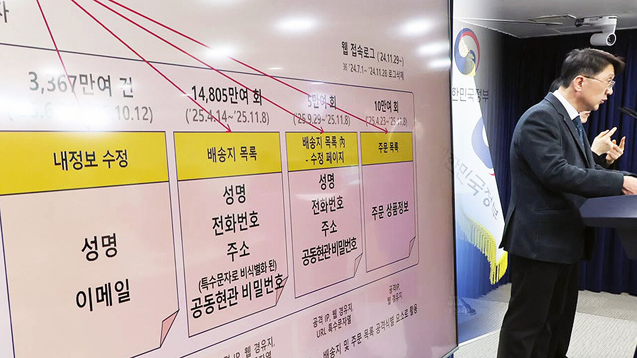 쿠팡 개인정보 유출사고에 대한 합동 조사결과, 3천367만 개 계정의 이름과 이메일이 유출된 것으로 드러났습니다. 전화번호와 주소가 적힌 배송지 주문 정보도 1억 4천만 번이나 조회된 것으로 나타났습니다.