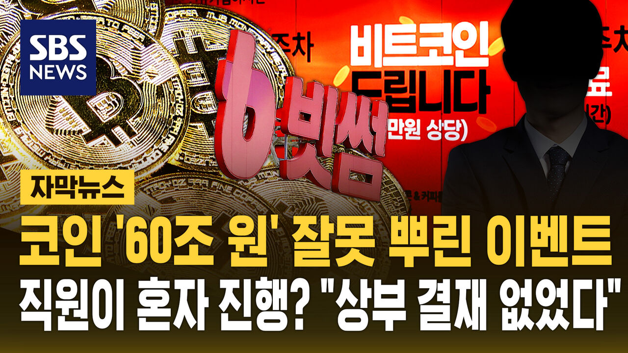 국내 2위 가상자산 거래소 빗썸이 60조 원 상당의 비트코인 오지급 사태를 일으킨 코인 이벤트 당시 윗선 승인 절차 없이 마케팅 직원이 이를 혼자 실행했던 걸로 드러났습니다.