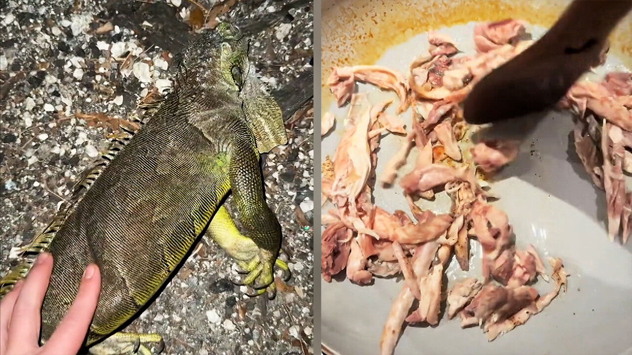 미국 플로리다주에 사는 이 남성은 한파에 얼어붙은 이구아나를 잡아 직접 요리하기로 했고 그 과정을 촬영해 SNS에 공개했습니다.