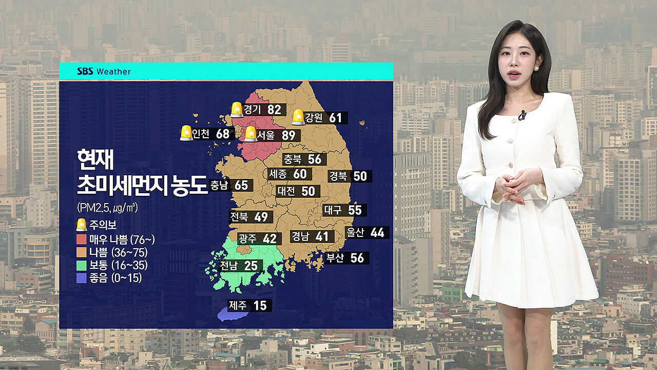 올겨울 처음으로 수도권과 강원 영서에는 미세먼지 비상저감조치가 내려져 있는 가운데, 현재 서울의 초미세먼지 농도는 89마이크로그램까지 치솟아 있습니다.