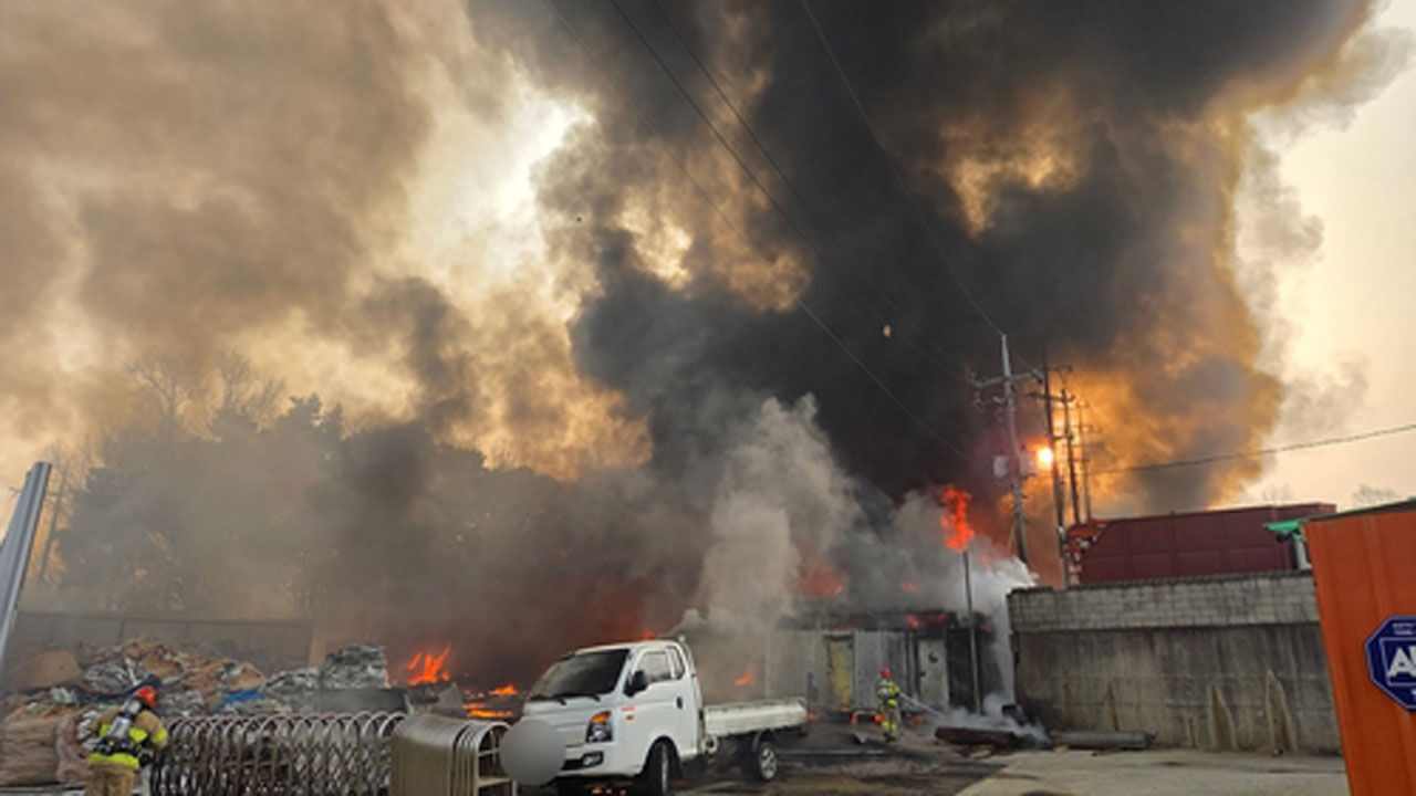 공장 부지 내 야적장에서 시작된 불이 지상 3층 규모의 공장 건물로 옮겨붙으며 다량의 연기가 발생한 것으로 전해졌습니다.