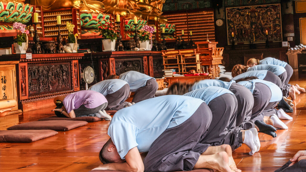 ▲ 지난해 9월 8일 김제 금산사에서 템플스테이 체험하는 외국인 관광객.