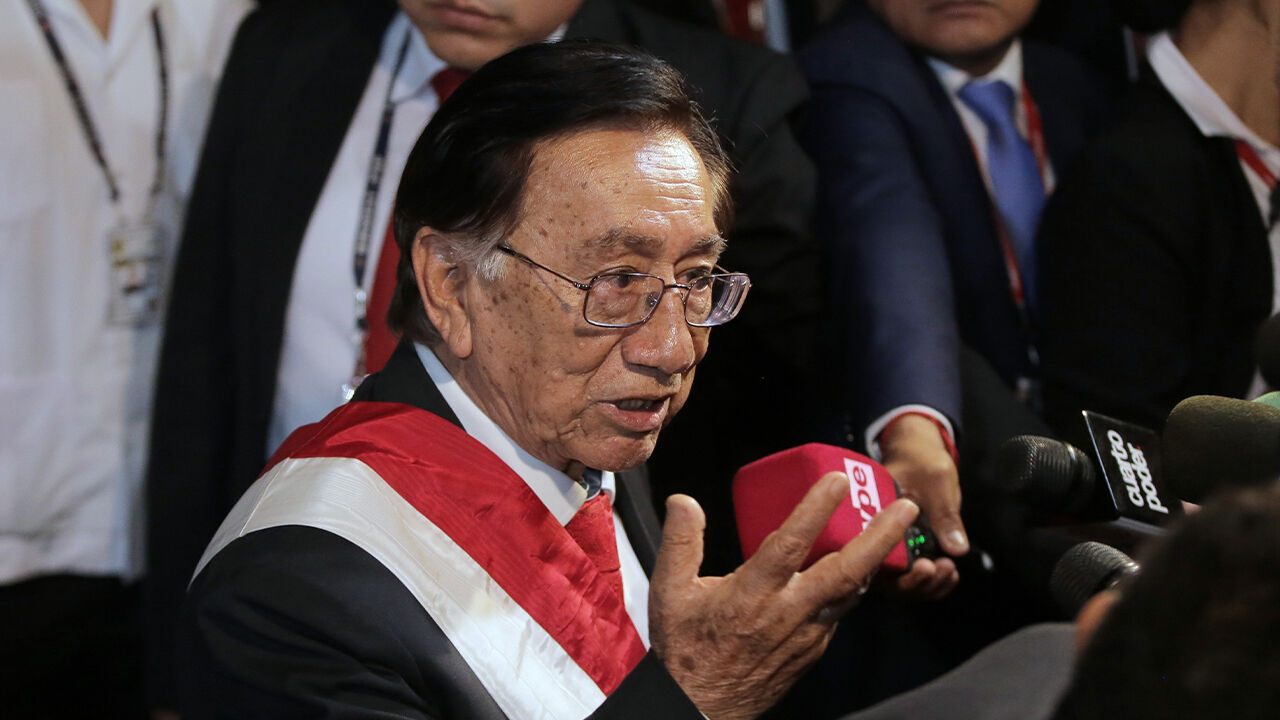 ▲ 18일(현지시간) 발언하는 호세 마리아 발카사르 페루 임시 대통령