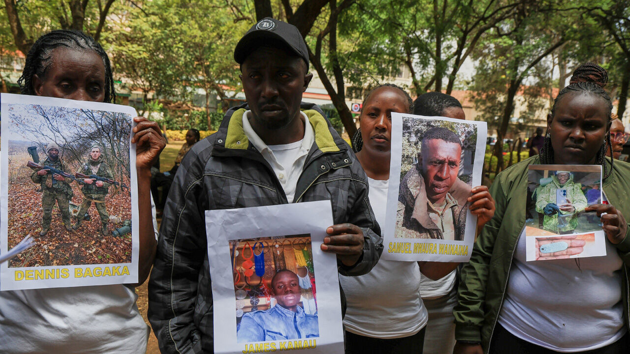 ▲ 러시아군 용병이 된 가족의 사진을 들고 있는 케냐인들