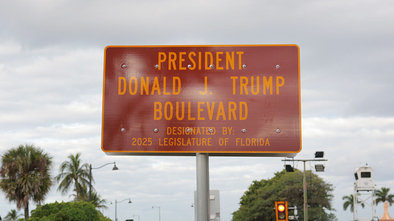 이 두 곳을 잇는 도로 구간의 이름은 이미 팜비치 '도널드 J. 트럼프 대통령 대로'로 변경됐으며, 새 이릉을 붙이는 행사가 지난달 중순 트럼프 대통령이 참석한 가운데 마러라고에서 열렸습니다.