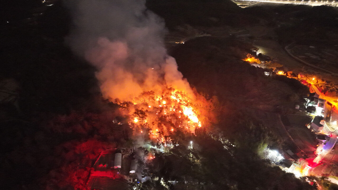 ▲ 22일 오전 3시 44분께 울산 중구 성안동의 한 야산에서 불이 났다가 3시간 30분 만에 주불이 잡혔다.
