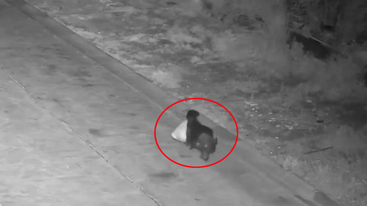 웬 개 한 마리가 커다란 봉투를 입에 물고 걷다가 길가에 내려놓는 모습이 담겼는데요.