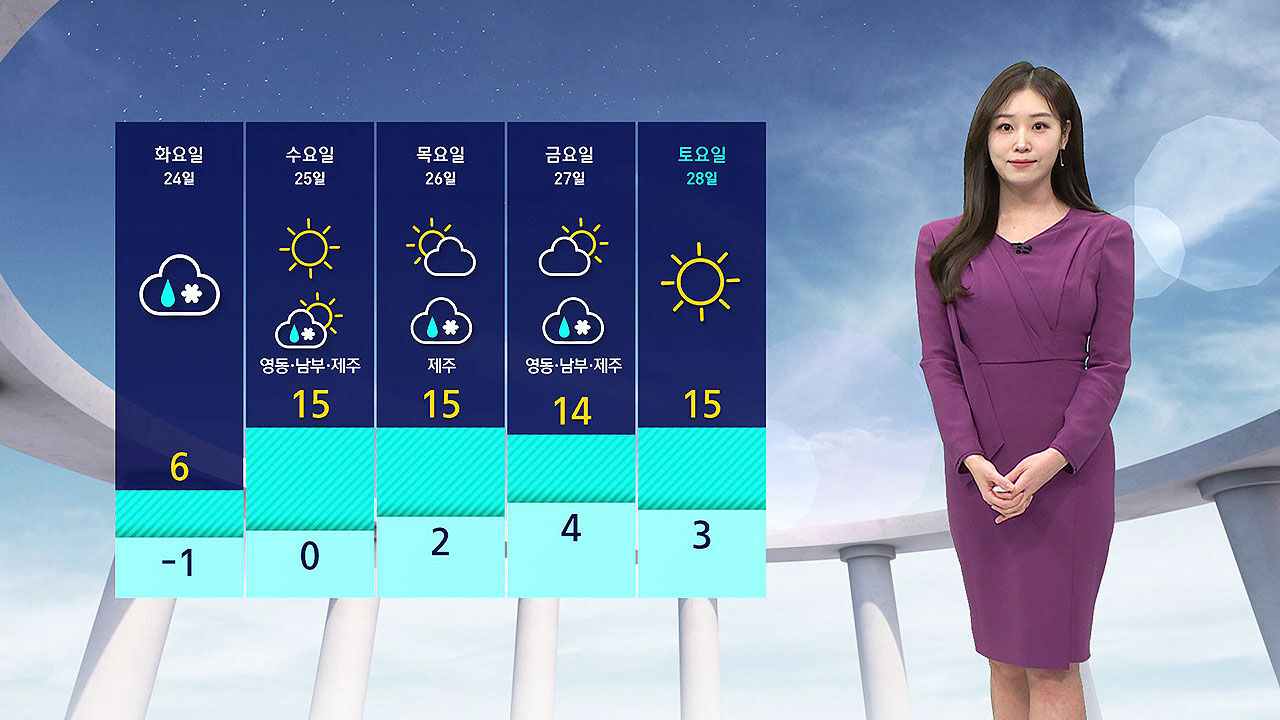 당분간은 영동과 남부, 제주 지역을 중심으로 비나 눈이 오는 날이 많겠습니다.