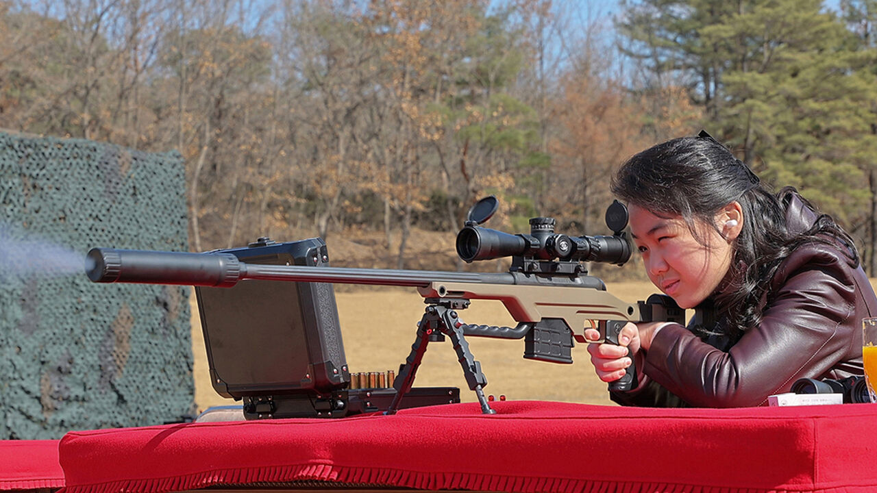 ▲ 김정은 국무위원장이 27일 주요간부들에게 저격수보총을 선물하고 사격장에서 저격무기 사격을 한 가운데 김위원장의 딸 주애가 저격총을 조준한 모습을 이례적으로 공개했다.