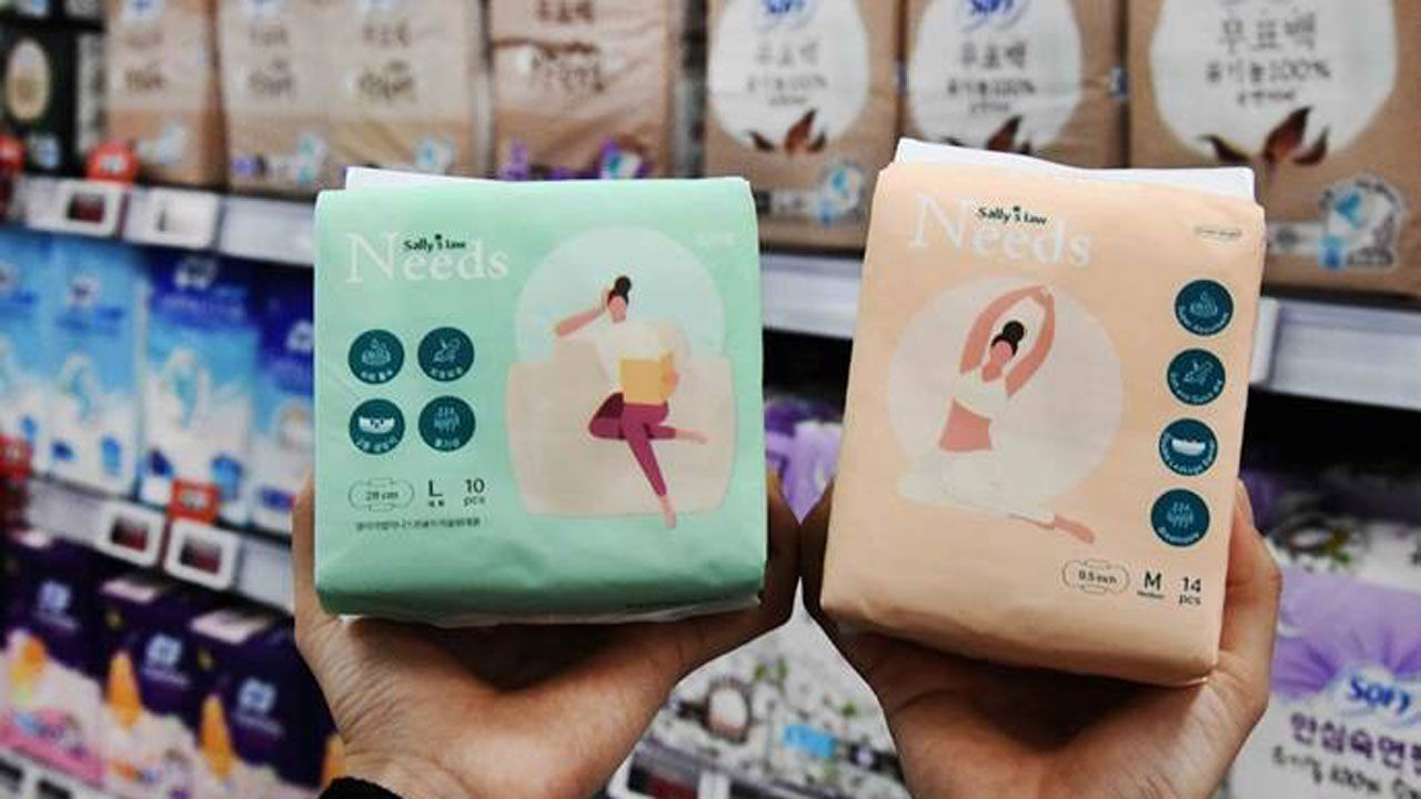 이번에 선보이는 초저가 생리대는 100% 국내에서 생산한 '샐리의법칙 니즈원 생리대' 4종입니다.