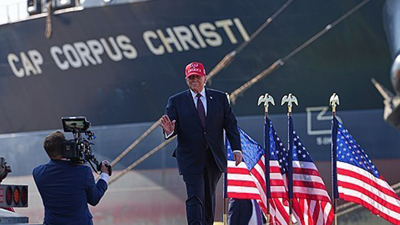 ▲ 트럼프 대통령이 지난달 28일(현지시간) 연설을 위해 텍사스주 코퍼스 크리스티 항구를 찾았다.