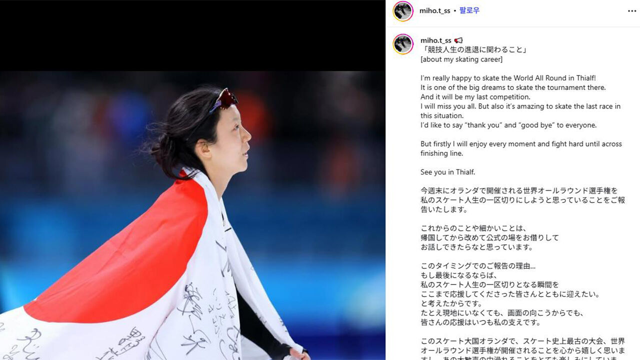 다카기는 자신의 SNS를 통해 "2026 국제빙상경기연맹(ISU) 스피드 스케이팅 세계선수권대회는 마지막 경쟁 무대가 될 것"이라며 "여러분 모두가 그리울 것"이라고 밝혔습니다.