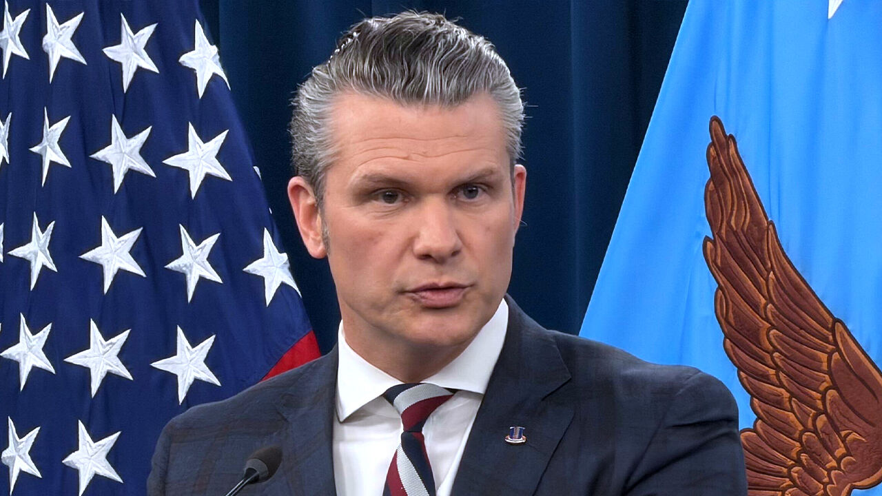 ▲ 피트 헤그세스 미국 국방부(전쟁부) 장관이 4일(현지시간) 미 국방부 청사에서 브리핑을 하고 있다.