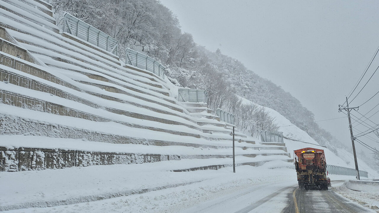 강원지방기상청에 따르면 전날 오후 6시부터 오늘 오전 6시 현재까지 내린 눈의 양은 향로봉 14.5㎝, 화천 광덕고개 10.2㎝, 인제 덕적리 7.8㎝, 진부령 6.7㎝, 양구 해안 5.8㎝ 등입니다.
