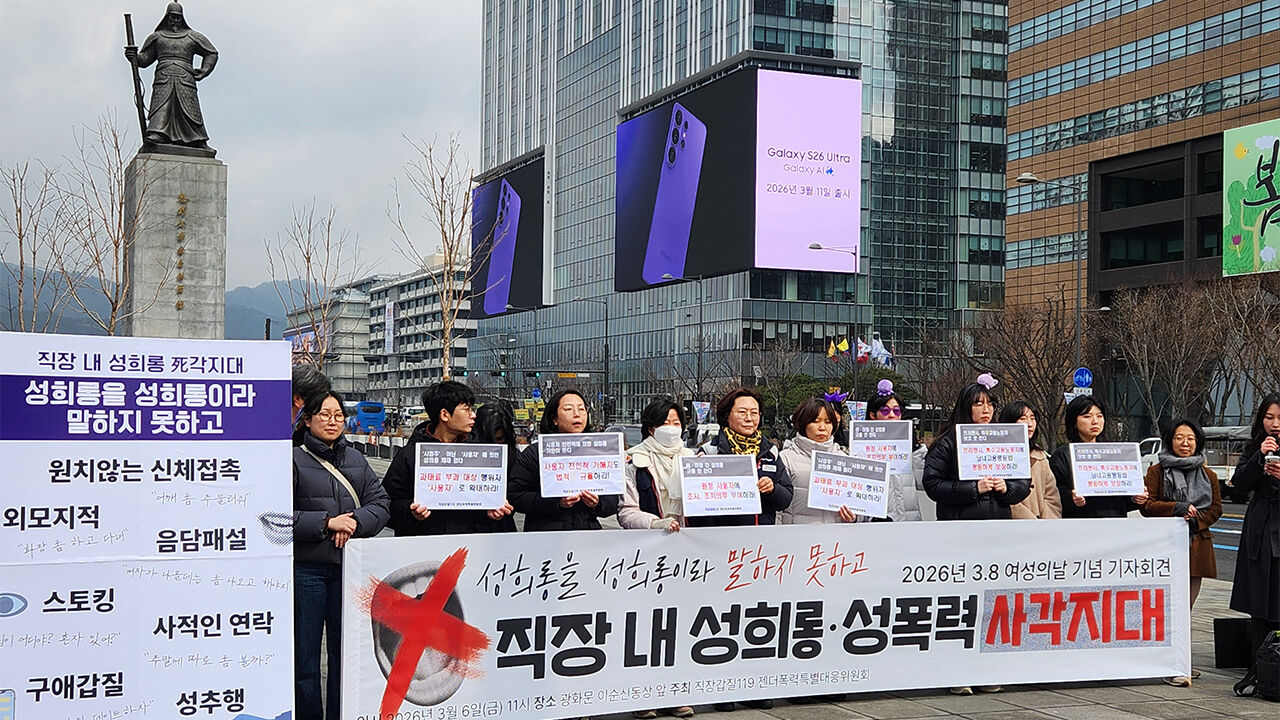 시민단체 직장갑질119 젠더폭력특별위원회는 세계 여성의 날(매년 3월 8일)을 앞둔 오늘(6일) 오전 서울 종로구 광화문광장에서 기자회견을 열어 2022년 6월∼2026년 2월 접수된 이 같은 성희롱 사례를 공개했습니다.