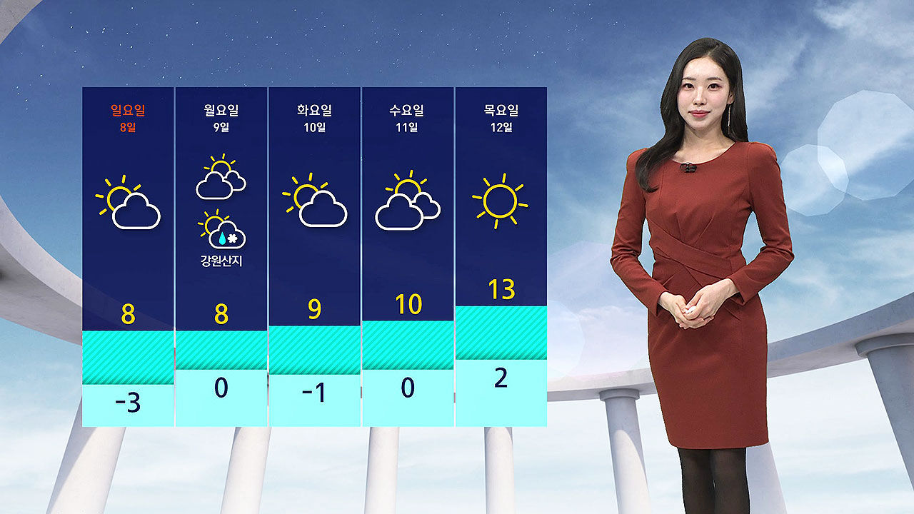 당분간 대체로 맑은 날씨가 이어지겠고 다음 주에는 평년 수준의 초봄 날씨가 예상됩니다.