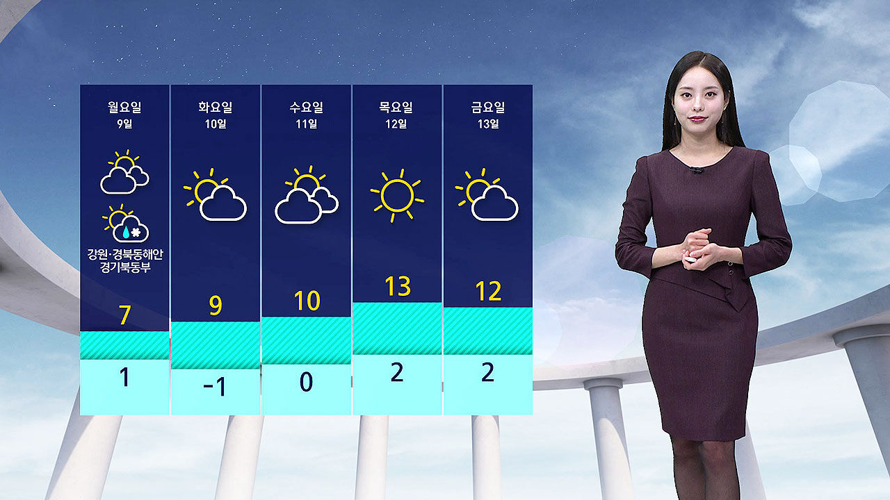 꽃샘추위는 주 후반부터 차츰 풀리겠고 내일은 강원을 중심으로 눈이나 비가 내리겠습니다.