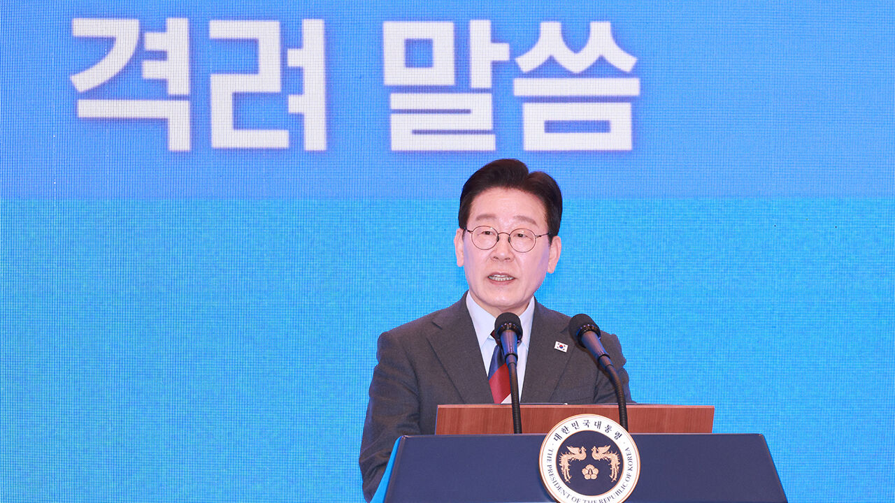 ▲ 이재명 대통령이 5일 청와대 영빈관에서 열린 밀라노-코르티나 동계올림픽 선수단 초청 오찬에서 격려사를 하고 있다.