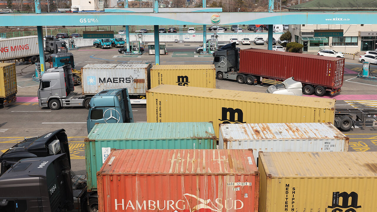 ▲ 지난 9일 국제유가가 배럴당 100달러를 돌파한 가운데 경기도 의왕시 의왕ICD 터미널 주유소 앞에 화물차들이 대기해 있다