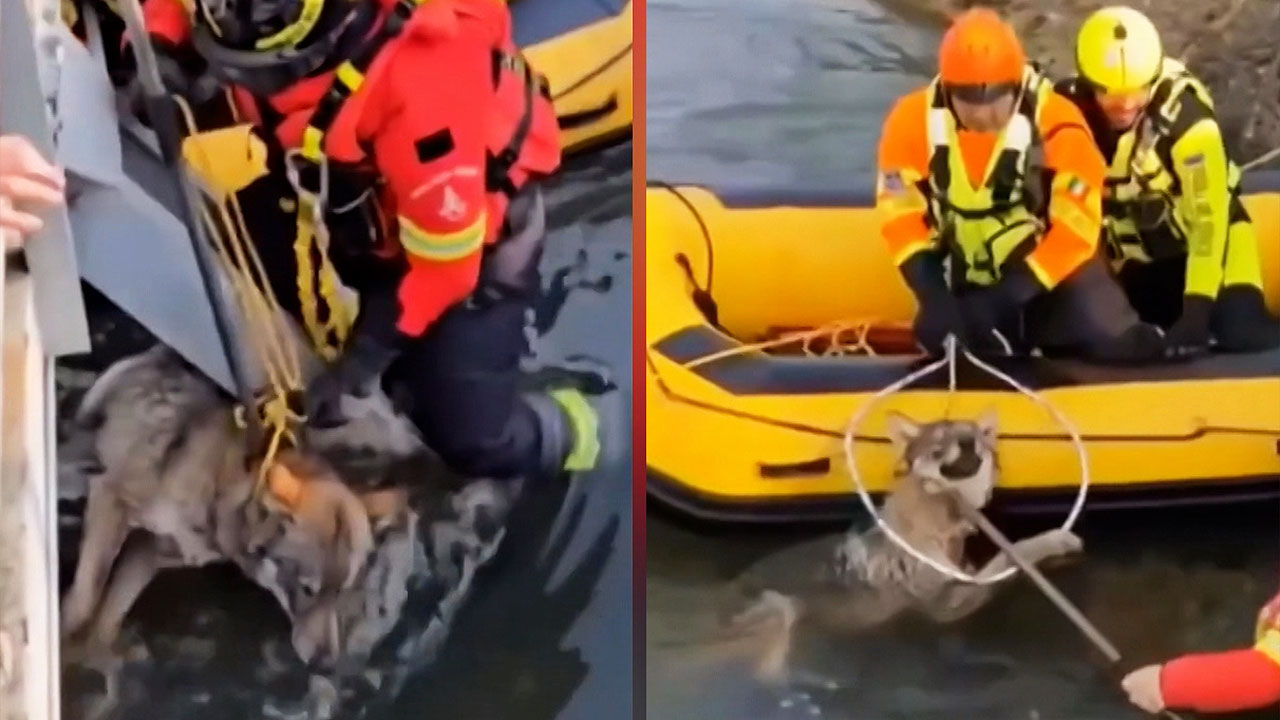 위기에 빠진 늑대가 있다는 신고에 소방대와 수의사들이 출동했고, 보트를 이용해 조심스럽게 접근한 뒤 늑대를 무사히 구조했는데요.