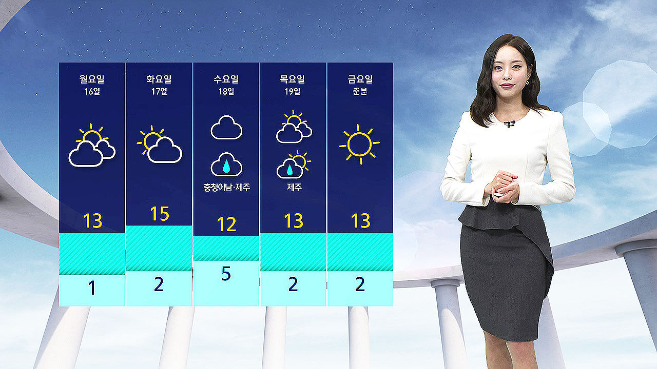 한낮에 서울 12도, 대구 광주 13도 보이겠습니다.