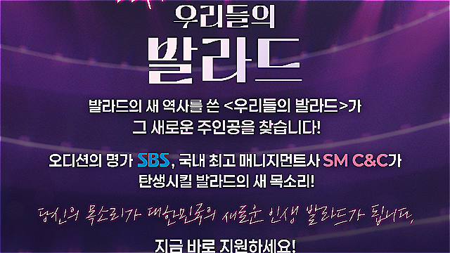 오디션 프로그램의 명가 SBS와 국내 최고 매니지먼트사 SM C&C가 손잡고 다시 한 번 발라드 열풍을 일으킬 '우리들의 발라드'는 올 하반기에 방송될 예정이다.