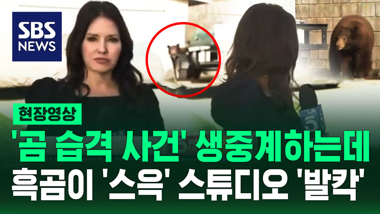 현지시간 15일, 미국 캘리포니아주 지역 방송 KTLA에 따르면, 몬로비아에서 곰 공격 사건을 취재하던 기자의 생방송 화면 뒤로 실제 검은 곰이 나타났습니다.