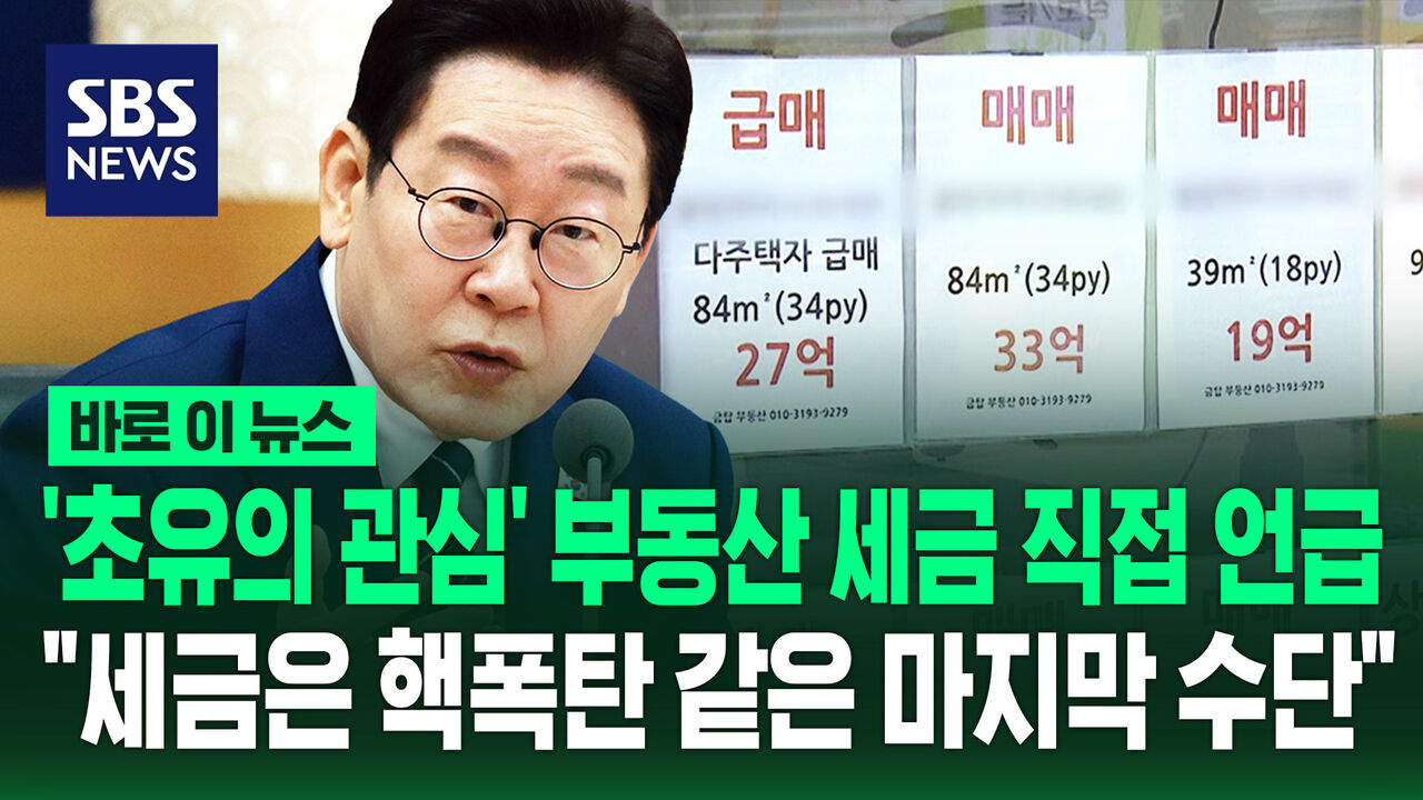 이재명 대통령이 오늘 (17일) "부동산 세금 문제는 최대한 마지막 수단이지만, 써서라도 해야하면 써야한다"고 강조했습니다. 이 대통령은 이날 정부세종청사에서 주재한 국무회의에서 “세금은 전쟁으로 치면 핵폭탄 같은 것”이라며 이같이 말했습니다. 그러면서 “부동산 문제를 어떻게 할 것인가는 금융 부분이 매우 중요하다”며 “대한민국 부동산은 투기, 투자의 대상이 돼버렸는데 가장 큰 영향을 미친 게 금융”이라고 지적했습니다. 자세한 내용은 직접 영상으로 확인하세요.