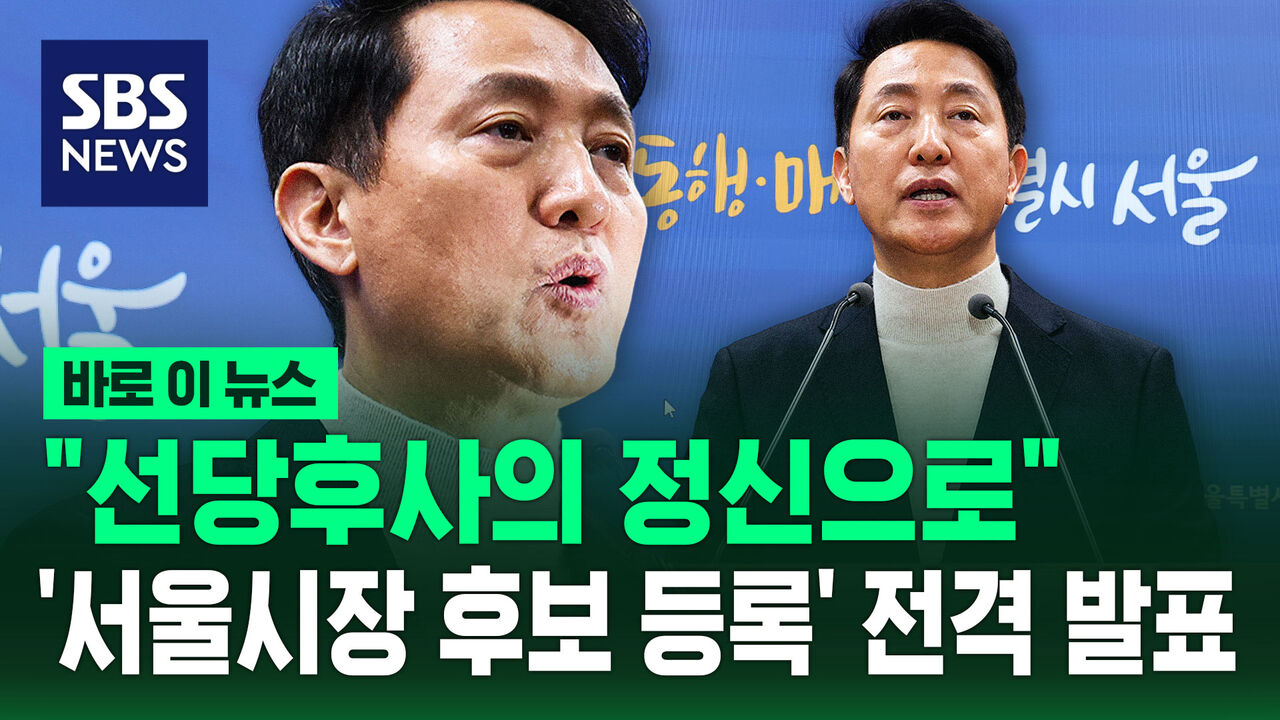 오세훈 서울시장이 오늘(17일) 기자회견을 열고 국민의힘 서울시장 공천 후보에 등록하겠다고 밝혔습니다. 오 시장은 "서울 시민에 대한 책임감과 선당후사의 정신으로 국민의힘 서울시장 후보 등록을 한다"고 밝혔습니다. 오 시장은 "(국민의힘) 의원총회 결의문이 선언에 그치지 않으려면 그에 걸맞은 실천이 반드시 뒤따라야 한다고 분명히 말씀드렸다"면서 "안타깝게도, 장동혁 대표와 지도부는 국민이 납득할 만한 변화의 의지를 보여주지 않고 있다"고 전했습니다. 이어서 "위기 때마다 스스로를 바꿔왔던 보수의 쇄신 DNA가 지금 우리 당에서 보이지 않는다"며 "최전방 사령관의 마음으로 이 전장에 나선다"고 말했습니다.