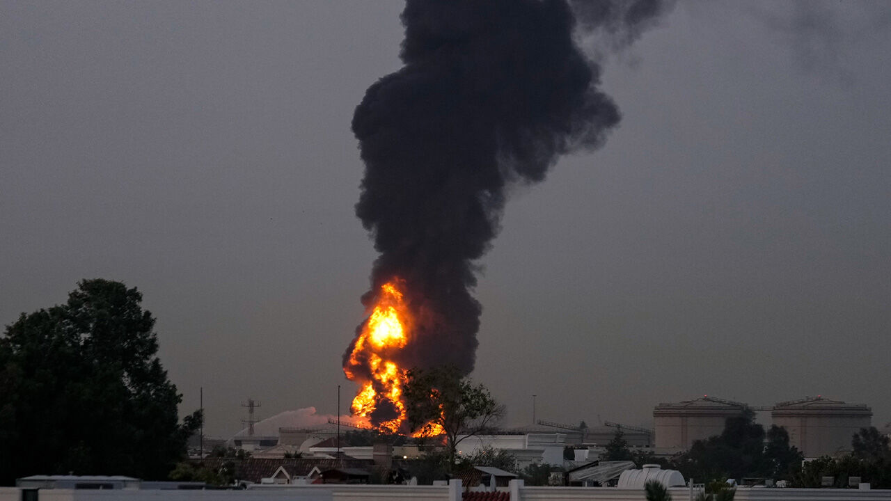 ▲ 2026년 3월 16일 두바이 국제공항 근처의 유류저장고가 이란의 공격을 받아 불이 붙고 연기와 화염이 치솟는 모습.