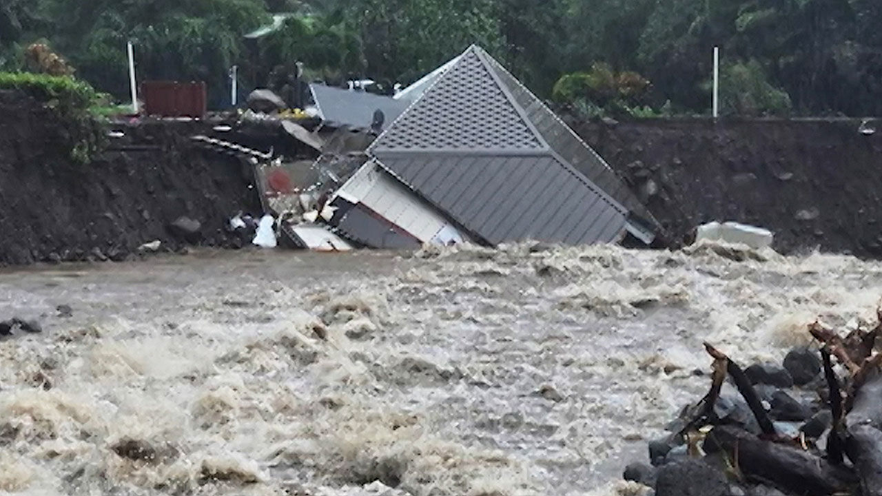 최근 잇따른 폭우로 집 주변을 흐르던 하천이 순식간에 불어나면서 집을 떠받치던 땅이 무너졌다고 하네요.