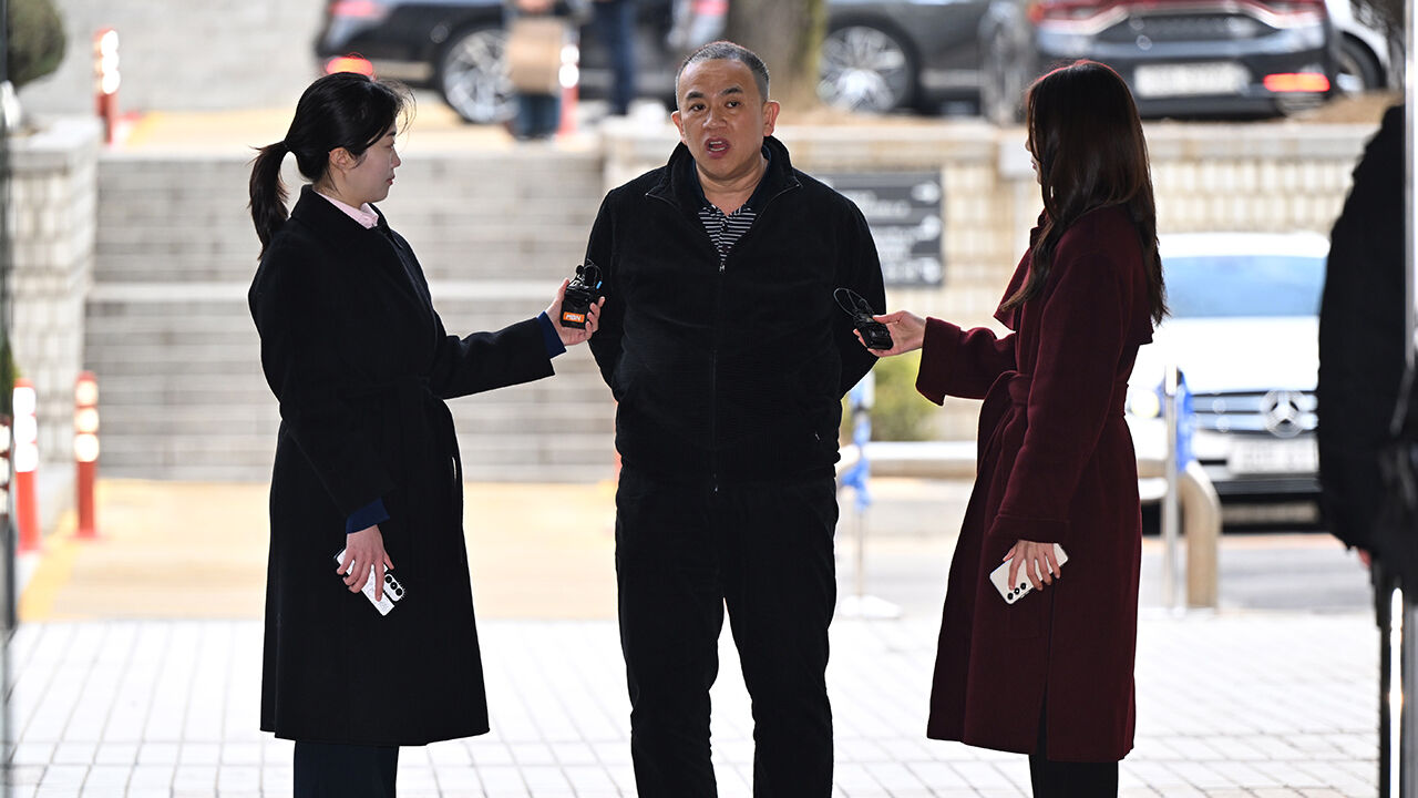 ▲ 정치 브로커 명태균 씨가 20일 서울 서초구 서울중앙지방법원에서 열린 오세훈 서울시장의 정치자금법 위반 혐의 사건 공판에 증인으로 출석하며 취재진에 입장을 밝히고 있다