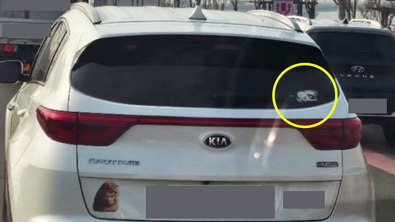 최근 온라인 커뮤니티에는 흰색 SUV 차량 후면 유리에 기괴한 귀신 이미지를 붙인 차량이 나타나 화제가 됐습니다.