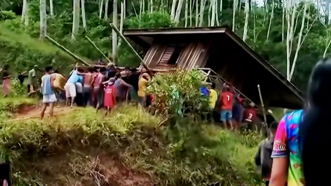 그런데 필리핀에서는 전통 방식으로 이사를 하다가 아찔한 사고가 발생했습니다.