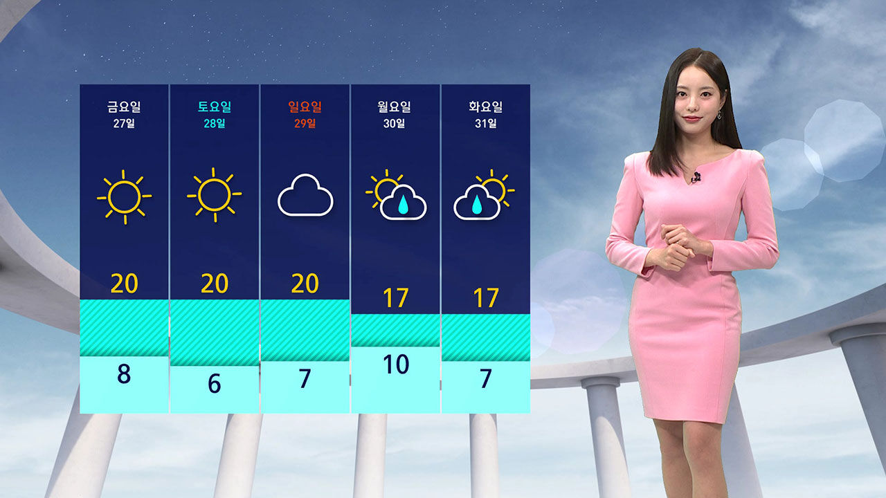 오늘(26일) 한낮에는 20도까지 오르며 4월 하순에 해당하는 기온을 보이겠습니다.