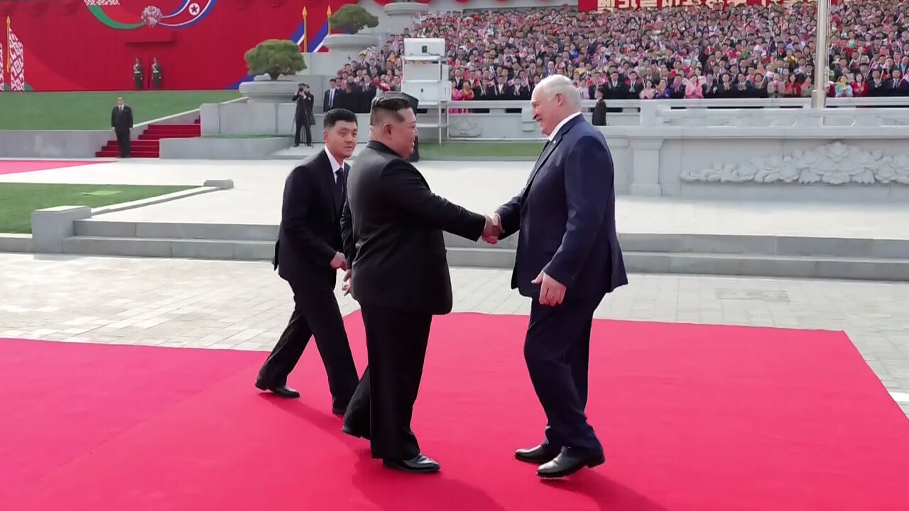 ▲ 김정은 북한 국무위원장의 초청으로 북한을 공식 방문한 알렉산드르 루카셴코 벨라루스 대통령을 환영하는 의식이 지난 25일 평양 김일성광장에서 진행됐다고 조선중앙TV가 26일 보도했다.